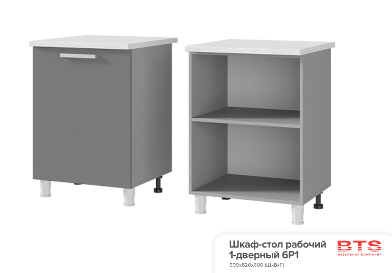 Главная →  Каталог →  Модули для модульной кухни →  Кухонные модули серии Монро БТС →  6Р1 Шкаф-стол рабочий 1-дверный Монро